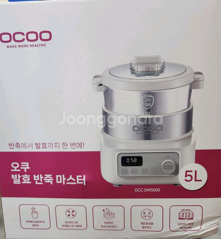 오쿠 발효 반죽 마스터 OCC-DM5000 모델입니다 3회 미만 사용 작동 잘 됩니다. 반죽에서 발효까지 한번에 가능한 제품이에요~! - 5L 용량 - 22가지 다양한 레시피 제공 - 위생적인 SUS304 용기 - 박스 포함