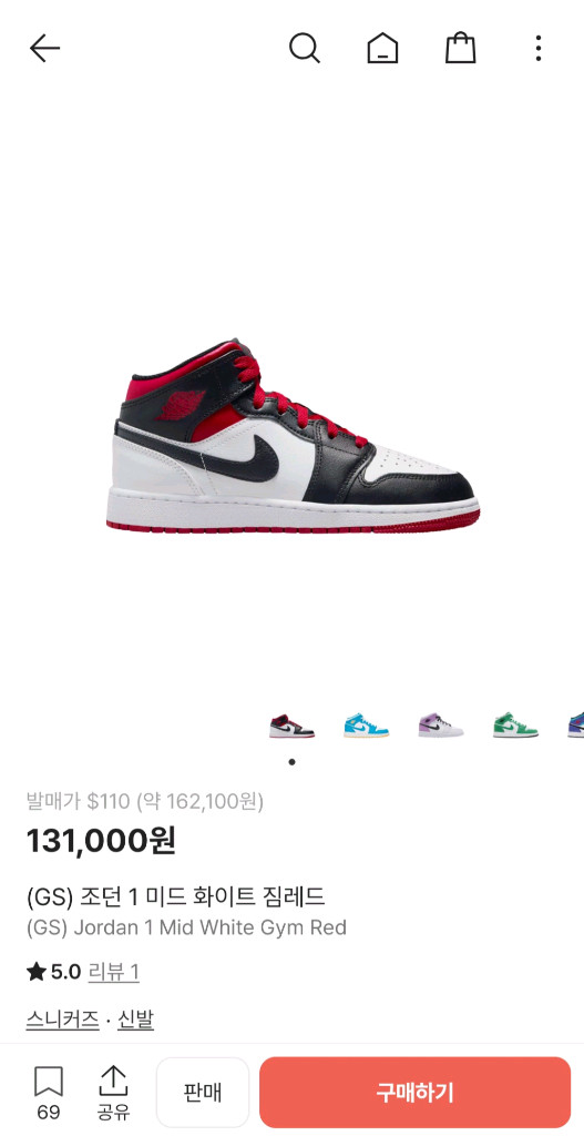 개인정보(거래정보)를 주고받는 행위는 사기에 노출될 수 있으므로 즉시 중고나라로 신고해 주세요나이키 조던 1 미드 화이트 짐레드 입니다 - 블랙, 화이트, 레드 색상 조합입니다 - 약간의 사용감 있습니다 - 농구화로도, 패션화로도 좋습니다 사이즈 235입니다