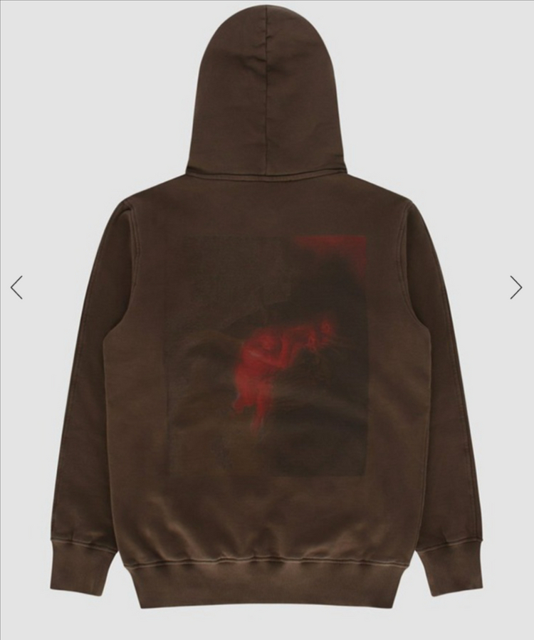 [새상품]Alyx 페인트 프린팅 로고 후드티 L 빈티지한 느낌이 가미된 브라운 컬러입니다. 리테일가 60만원, 택채 새상품입니다 어깨 48 가슴 57 총장 75 옷장정리로 급처합니다