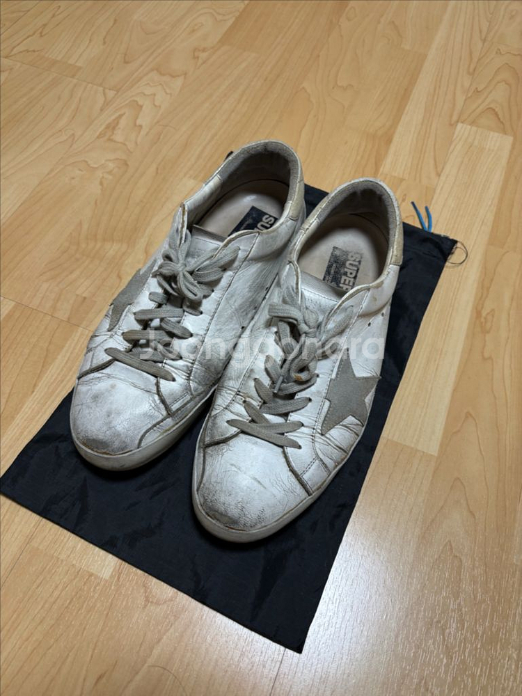 골든구스 실버탭 44 사이즈 입니다 44사이즈 매물이 흔하지 않아요 저도 몇년전에 50몇만원 주고 구매했었습니다 정품 맞고요 밑창 보강까지 했었습니다 상태 보시고 가격이 가격인만큼 묻따로 구매해주세요 사진 더달라 하자 없냐 문의x