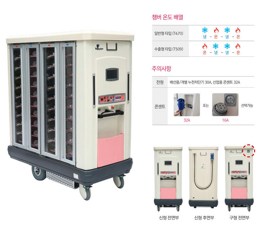 전동식 온·냉장 배식카 1대를 100만원에 판매합니다. 전체적인 상태 양호하며 사용감은 있으나 기능적으로 문제 없습니다. 해당 제품에 사용되는 트레이 및 식기를 개수에 맞춰 서비스로 드립니다. ▪︎모델명: 해피카트 오리지널 HA-40E ▪︎규격(mm): 1526*770*1762 ▪︎트레이(개수): 40개 ▪︎단수: 4열 10단 ▪︎소비전력: 2.7KW ▪︎용량: 40인용 ▪︎전동모터 작동 원활하며 이동 시 무리 없음 ▪︎전방 및 후방 카메라 정상 작동 ▪︎보유 수량: 1대 요양시설, 병원, 급식시설 등에서 바로 사용 가능한 상태입니다. 관심 있으신 분은 문의 바랍니다. * 제품 소개 링크 https://mscmk.com/?folder=product&page=01
