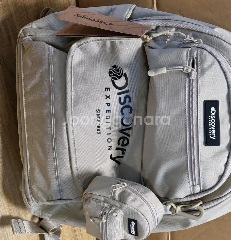 디스커버리 브랜드의 베이지 컬러 백팩이에요. 여러 포켓과 수납공간이 있어서 실용적이고, 전체적으로 깔끔한 상태입니다. 성인용인줄 알고 주문했는데 학생용이라 바로 판매합니다