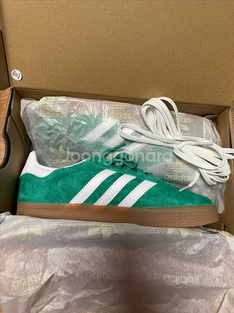 아디다스 가젤 그린 컬러 230사이즈입니다. 박스와 함께 깔끔한 상태로 보관되어 있어요. 클래식한 디자인으로 데일리 착용하기 좋습니다.
