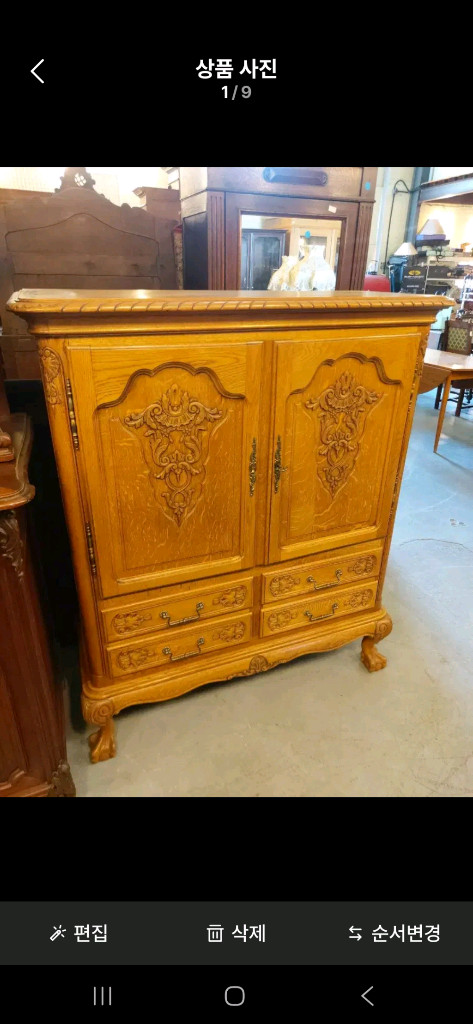 프렌치 정통 오크 앤틱 장식장 입니다 세월대비 보존 상태는 양호한 편이며 화려한 조각과 유립 장인의 숨결이 숨쉬는 아주 럭셔리한 장식장 입니다 관심 있으시면 언제든지 연락주세요 직접 오셔서 구매하셔도 되고 배송을 원하실경우 서울 경기지역은 8만 정도 소요됩니다 그외 타지역은 배송비는 지역에 따라 차이가 날 수 있으니 문의 부탁 드립니다 직거래도 가능 합니다 주소 경기도 양주시 권율로 1357-9
