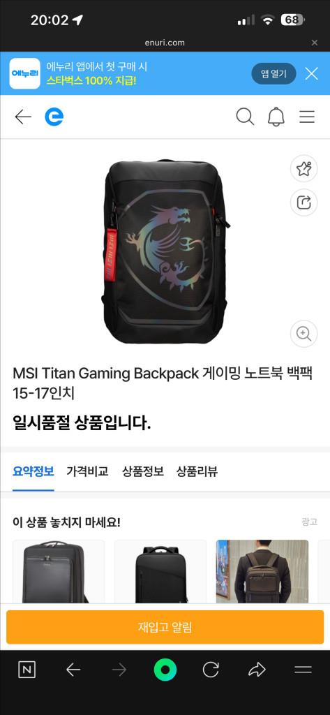 MSI 게이밍 백팩 새제품 판매 새제품입니다! 직거래/택베거래 모두 가능합니다. 택배는 반값 가능해요!