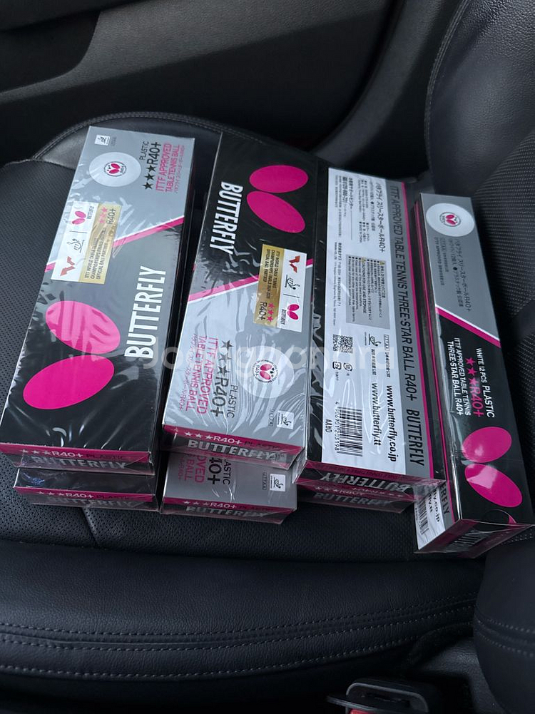 버터플라이 3스타 R40+ 탁구공 12개입 새제품입니다 - ITTF 승인된 제품입니다 - 플라스틱 재질로 만들어졌습니다 10세트 있습니다 문의주세요 010 9524 2586