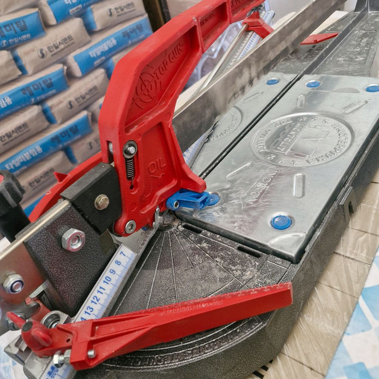 타일 절단 작업용 전문 장비입니다. 레드 컬러의 견고한 구조로 되어있고 상태 양호해 보여요. 건설이나 타일 작업에 유용한 도구입니다. 셀프욕실공사해보려고 새상품 구매했는데 타일 3개잘라보고 공사업체 그냥 맞겼습니다. 새상품 62만원 주고 구매했습니다. 55만원에 팝니다. 010 4557 1400