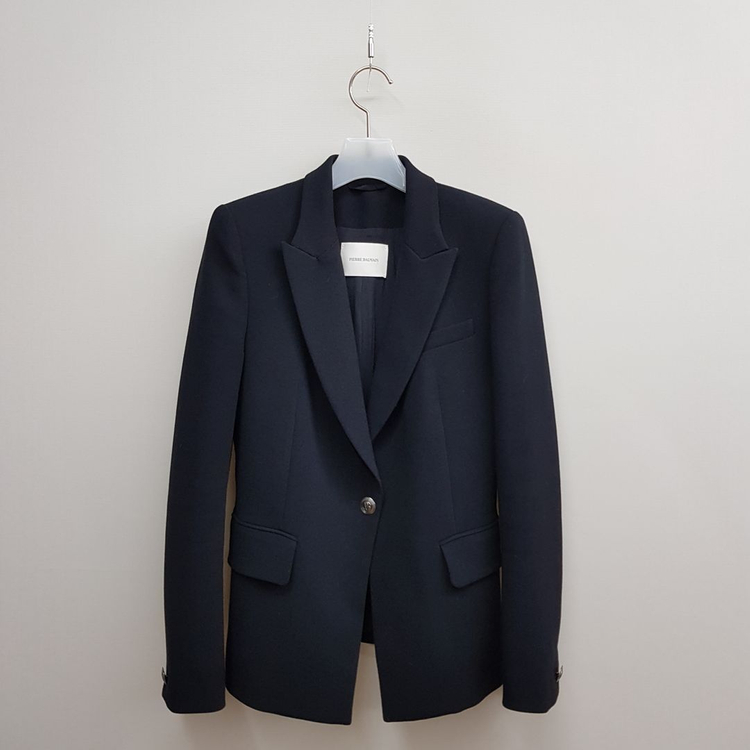 > 소재: 폴리에스터 65%, 비스코스 32%, 엘라스틴 3% > 상태: 최상 > 사이즈: 36사이즈 총장 앞기장 66 뒷면기장 61 가슴단면 44 어깨 38 팔길이 61 > 특징 프리미엄 감성이 담긴 Pierre Balmain(피에르 발망) 테일러드 자켓입니다. 깔끔하고 고급스러운 블랙 컬러가 돋보이며, 슬림하게 떨어지는 핏이 세련된 실루엣을 만들어 줍니다. 탄탄한 소재감과 적절한 텐션감이 있어 착용감이 안정적이며, 비스코스 혼방 소재로 부드럽고 고급스러운 터치감을 느낄 수 있습니다. 안감 처리 또한 매끄러워 이너와의 마찰이 적어 편안한 착용감을 제공합니다. 단추 한 개로 시크하게 마감되는 싱글 버튼 디테일이 특징이며, 포켓 디테일이 실용성을 더해줍니다. 오피스룩, 모임룩, 하객룩까지 폭넓게 활용 가능한 제품으로 36 사이즈 기준 55 체형에 추천드립니다. 택배비 착불 혹은 3000원입니다 중고라서 교환 환불 안되는점 이해부탁드립니다.