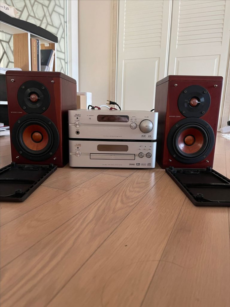 JVC EX-A10 우드콘 오디오 시스템 (상태 그뤠잇) + 클래식 CD 컬렉션 포함 판매 가격: 350,000원 아버지가 정말 아끼시며 관리하시던 JVC EX-A10 우드콘 오디오 시스템 판매합니다. 오디오 좀 아시는 분들은 다 아시는 모델이라 긴 설명 안 드려도 아실 거라 생각합니다. 나무 진동판에서 나오는 소리가 정말 맑고 편안합니다. [상태] • 작동 완벽하고, 스피커 유닛 눌린 곳 없이 상태 아주 좋습니다. • 사진 보시면 아시겠지만 뒷면 배선도 바이와이어링으로 완벽하게 체결되어 관리되었습니다. • 좋운 상태지만 중고 제품이기에 너무 예민한 분은 패스해주세요. [구성품] 1. 본체 (앰프 RX-EXA10 + 플레이어 XV-EXA10) 2. 우드콘 스피커 1조 (SP-EXA10) 3. [특별 구성] 아버지가 모으신 클래식 CD (피아노, 클라리넷 연주곡 등) 함께 드립니다. 이 스피커가 현악기와 피아노 소리에 정말 발군이라 같이 들으시면 감동이 다르실 겁니다. [참고사항] • 이사 과정에서 리모컨을 분실했습니다. (본체 버튼으로 모든 기능 조작 가능합니다.) • 현재 중고 장터에 40만 원 중반대에도 올라오는 모델이지만, 리모컨 부재 감안하여 합리적인 가격에 올립니다. •무게와 파손 우려로 직거래 우선합니다. •택배비 5천원 포함되어있습니다. 뽁뽁이로 꼼꼼하게 포장해서 우체국 택배로 안전하게 보내드립니다. *직거래 희망하시면 남양주 진접읍에서 진행합니다. (오천원 빼드려요)