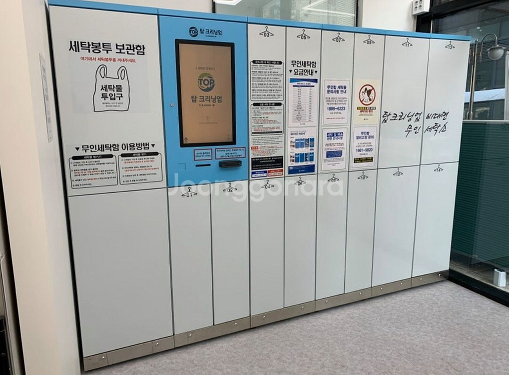 사업 확장 준비하시는 사장님께 탑크리닝업 무인 스마트 수거함 양도합니다. 상태 A급 장비입니다. 셀프빨래방 매장 또는 일반 매장에 배치하면 드라이크리닝 또는 이불빨래까지 접수가능 합니다. 고객이 셀프로 수거함에 넣고 접수하고 세탁업체가 수거 세탁 후 다시 수거함에 놓습니다. 고객은 계산을 해야 수거함 열수있게 되어 있습니다. 아파트,오피스텔,원룸 밀집 지역에서 최고의 고객 편의성을 제공하여 단골 확보에 유리합니다. 모델명 탑크리닝업 세탁 무인수거함 총 14칸이며 2023년 제작 상태는 A급이며 키오스트 일체형 시스템 완벽 작동합니다 신품가 700만원 상당입니다. 판매 희망가는 150만 입니다. 운반은 구매자 부담입니다 연락처 010 7619 1985