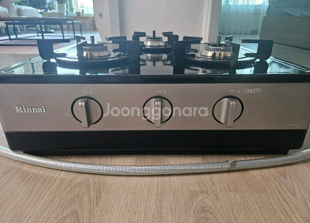 린나이가스렌지3구 2년사용 상태깨끗합니다 3구 화력좋습니다 스마트 안전센서 내장형 판매위치는 인천 계양입니다