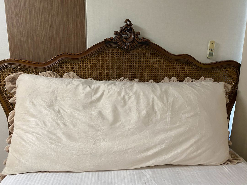 침대 헤드에 놓는 쿠션입니다 세탁후 보관만해서 구김이있으나 다림질하심 됩니다~ 아이보리 색상의 벨벳 소재로 되어있고, 앤틱 가구와 잘 어울립니다 몇번 사용도 못하고 세탁후 잘 보관중이라 아까워서 내놔요. 단추는 달아도 되고 안달아도 되고 단추를 꼬매는 방식인데 얹어만 놔서 그런데 달면 빵빵해집니다 단추 같이 챙겨드려여 28만원에 구입했었어요.