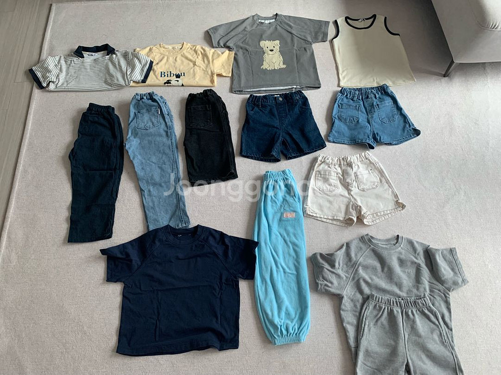 평소 원복을 입고 다녀서 마지막 사진 3개 빼고 (✅ 남색 티셔츠, 하늘색 바지, 그레이 상하복) 4-5회 정도 입은 옷들입니다. 일괄 판매만 합니다. 건조기 사용 안했습니다. 얼룩 이염 없고 마지막 사진 3장만 특이사항 있습니다. • 남색 티셔츠. 그레이 상하복: 아이가 상표 따갑다고 해서 상표 제거 흔적 • 하늘색 테리 바지: 올 나감 있음. 테리 소재 특성상 어쩔 수 없네요. 나머지 옷들은 상태 좋다고 판단됩니다.