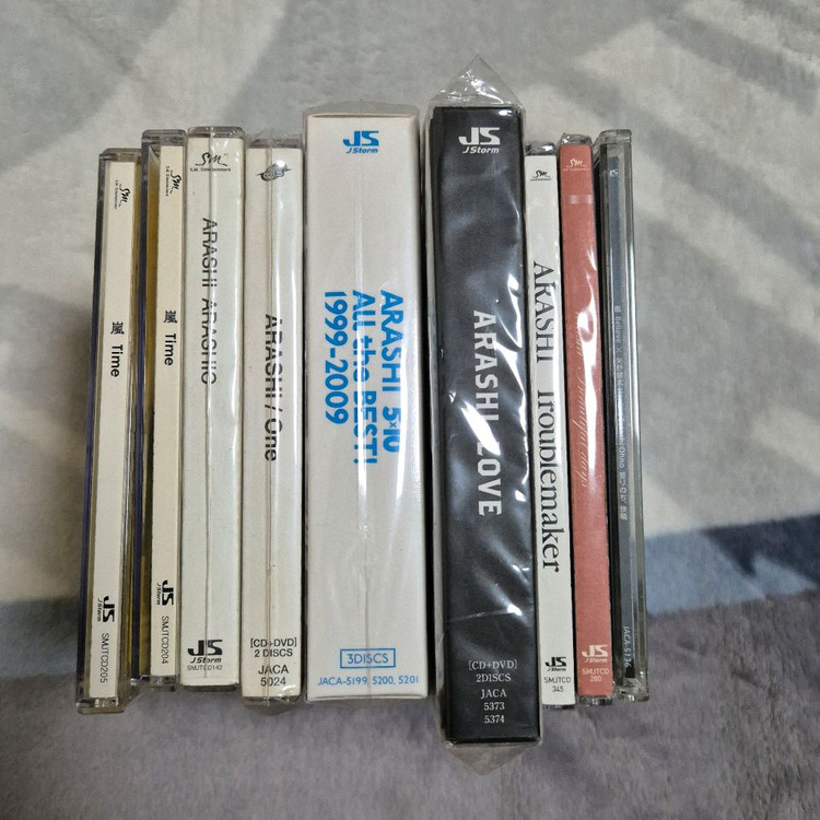아라시 CD 일괄 판매합니다 두번째 사진 윗줄 3개는 라이센스반이고 (타임 초회 / 타임 통상 / 아라식 통상) 가운데 3개는 일본반입니다 (ONE 초회한정 / 베스트 초회한정 / LOVE 초회한정) 마지막줄 싱글 3장은 그냥 같이 드릴게요(2장 미개봉) + DIGITALIAN 오노 포토세트도(5장) 함께 드립니다 * ONE 초회한정 제외 6만원에 구매 가능!