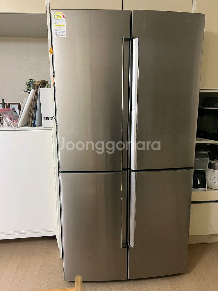 삼성 4도어 냉장고 모델 RF85N9662XF입니다 (T9000 푸드쇼케이스) 2018년 10월에 신혼가전으로 새제품 구매해서 깨끗하게 사용했습니다. 소중하고 깨끗하게 사용했습니다. 제조일은 2018. 9월. 제품 성능 이상없습니다. 2군데 살짝 찍힌 부분있습니다.