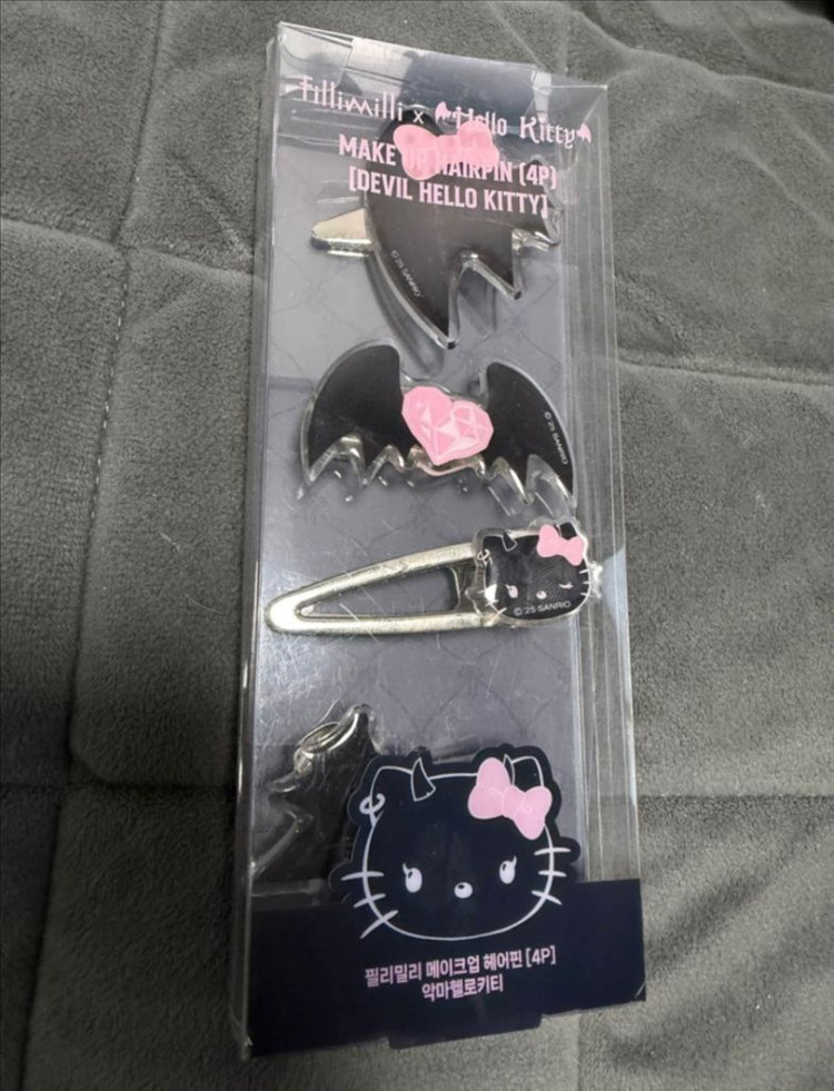 개인정보(거래정보)를 주고받는 행위는 사기에 노출될 수 있으므로 즉시 중고나라로 신고해 주세요필리밀리 X 헬로키티 콜라보 제품입니다 - 악마 헬로키티 메이크업 헤어핀 [4P] - 필리밀리 핸디 거울 악마 헬로키티 모두 미개봉 새 상품입니다