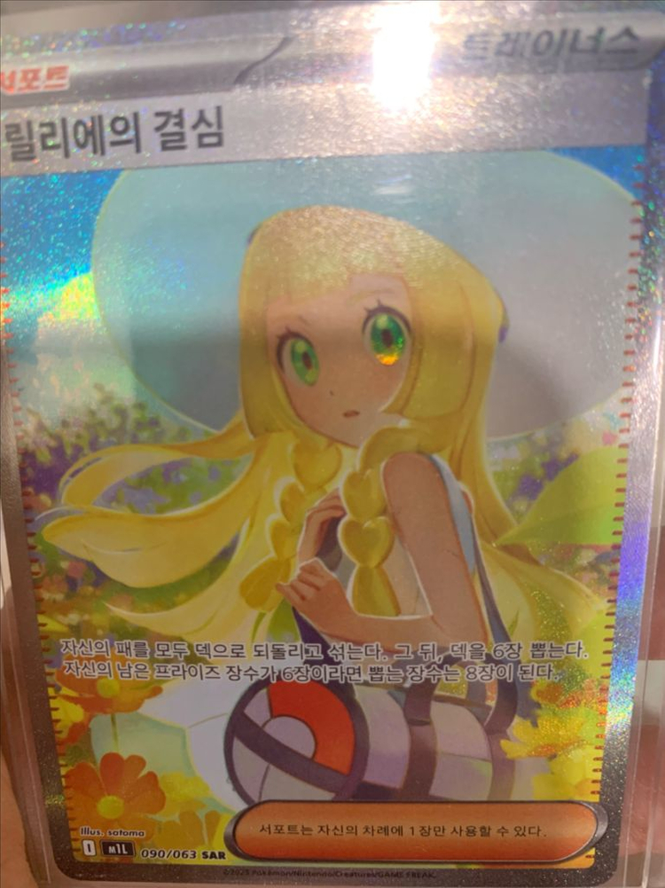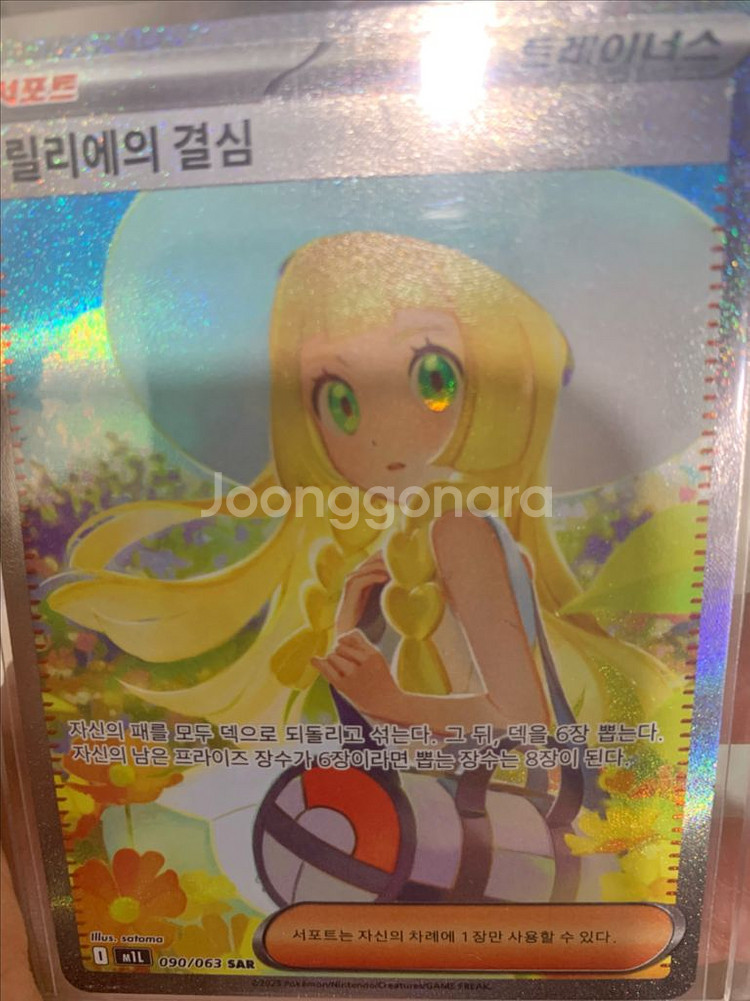 개인정보(거래정보)를 주고받는 행위는 사기에 노출될 수 있으므로 즉시 중고나라로 신고해 주세요포켓몬카드 릴리에의 결심sar 입니다. 연락주시면 더 자세한 사진 보내드리겠습니다! 뽑자마자 슬리브, 탑로더에 보관하였고 큰 하자는 없습니다. 공정상 미세하자가 있을 수도 있으니 예민하신분들은 뒤로가기 해주세요!
