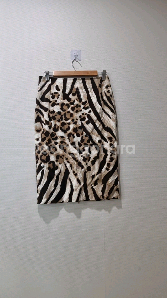 막스마라 스튜디오 정품 애니멀 패턴 H라인 스커트입니다. 지브라+호피 믹스 패턴이라 포인트 주기 좋고, 탄탄하면서도 신축성이 살짝 있어 착용감 편해요. 브랜드: MaxMara STUDIO 사이즈: IT 40 (국내 55반~66 추천) 실측: 허리단면 약 37cm, 총장 약 62cm 소재: 코튼 50%, 비스코스 45%, 엘라스틴 5% 컬러/패턴: 브라운 톤 애니멀 패턴 전체적으로 큰 하자 없이 좋은 상태입니다