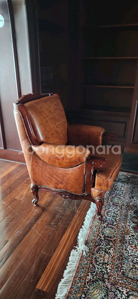 고급스러운 브라운 가죽 소재의 빈티지 스타일 리클라이너 의자예요. 클래식한 디자인과 부드러운 가죽 쿠션이 특징이며, 전체적으로 상태가 양호합니다. 호텔 스위트룸쇼파 세트입니다 양재동 010 3324 2038 배송비착불입니다