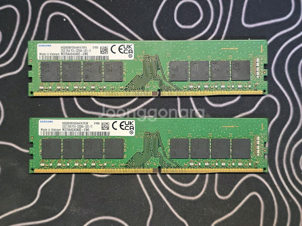 삼성 DDR4 32GB 램 2개입니다 PC4-3200이며, 두 개 다 같은 주차 제품입니다. 일괄 30, 단품 15.5입니다.