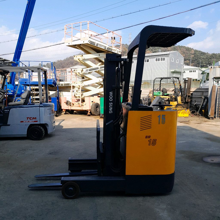 1.5톤 용량의 전동지게차입니다. 산업용으로 사용하던 제품이고 상태는 양호한 편이에요. 물류나 창고에서 바로 사용 가능합니다. 우성중공업에서 만든 1.5톤 입식지게차 입니다. 2단3미터 배터리 보통 충전기포함 부가세 운반비 별도
