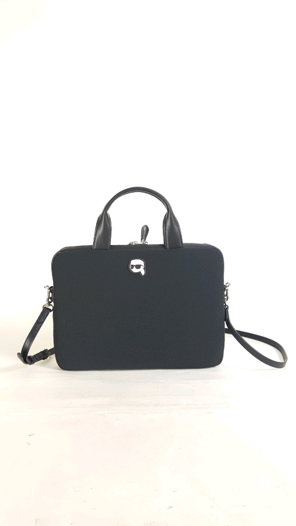 세계적인 명품 브랜드 칼라거펠트의 검정색 나일론 남성 브리프케이스 입니다. 전면의 브랜드 심볼이 샤넬 수석 디자이너인 칼라거펠트 특유의 고급스러움을 잘보여줍니다. 최고급 네오프렌 특수 합성 고무 소재로 아주 가볍고 부드러우며 도톰해서 충격에 강한 아이패드, 노트북 가방으로 사용합니다. 사이즈는 가로37×세로28×폭6 센티 입니다. 매장가 50 만원대의 아주 고가 상품입니다. 올해 신상품으로 더스트백, 게런티카드 등 모든 부속품이 완벽하니까 선물용으로도 좋아요. 이태리에서 직수입한 제품이고요 사용하지 않은 새상품입니다.