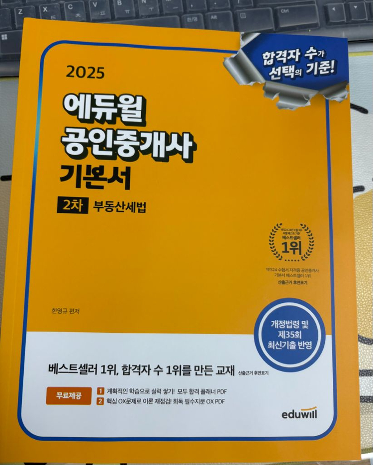 2025 에듀윌 공인중개사 부동산세법 팔아요 완전새책입니다 택포 1만8천원