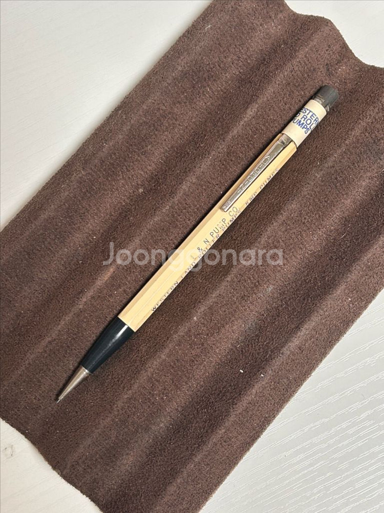 오랫동안 수집해온 희귀 필기구들을 분양하고 있습니다. 좋은 주인 만나서 잘 쓰였으면 좋겠습니다. =================== * 1960년대 제작된 오토포인트(Autopoint)사의 회전식 샤프입니다. * 크림색과 검정색입니다. 예쁩니다. * 잘 써집니다. * 0.9mm심을 사용합니다. * 오토포인트사는 1920년대부터 기계식 연필(샤프)사업을 시작해서 1970년대에 문을 닫았습니다. 특히 오토포인트에는 샤프 플라스틱 주형 관련 특허들이 많았다고 합니다. * 요즘 나오는 샤프와 달리 심을 앞으로 넣습니다. 앞을 잡고 본체를 시계방향으로 돌리면 심이 나옵니다.