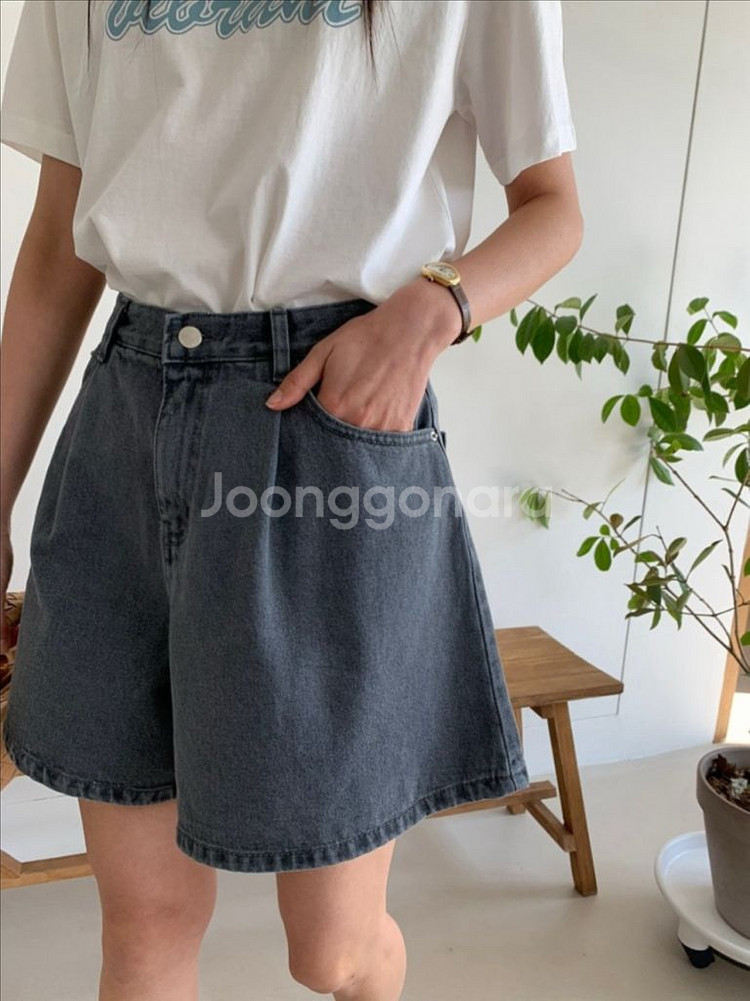 앞핀턱있는 핏이 예쁜 그레이 5부데님이에요~ 밑단이 넓은 A라인핏으로 다리가 슬림해 보여요. 적당한 기장의 반바지라 겨울만 빼고 간절기, 한여름까지 입어지고 상의 매칭하기 좋은 컬러예요