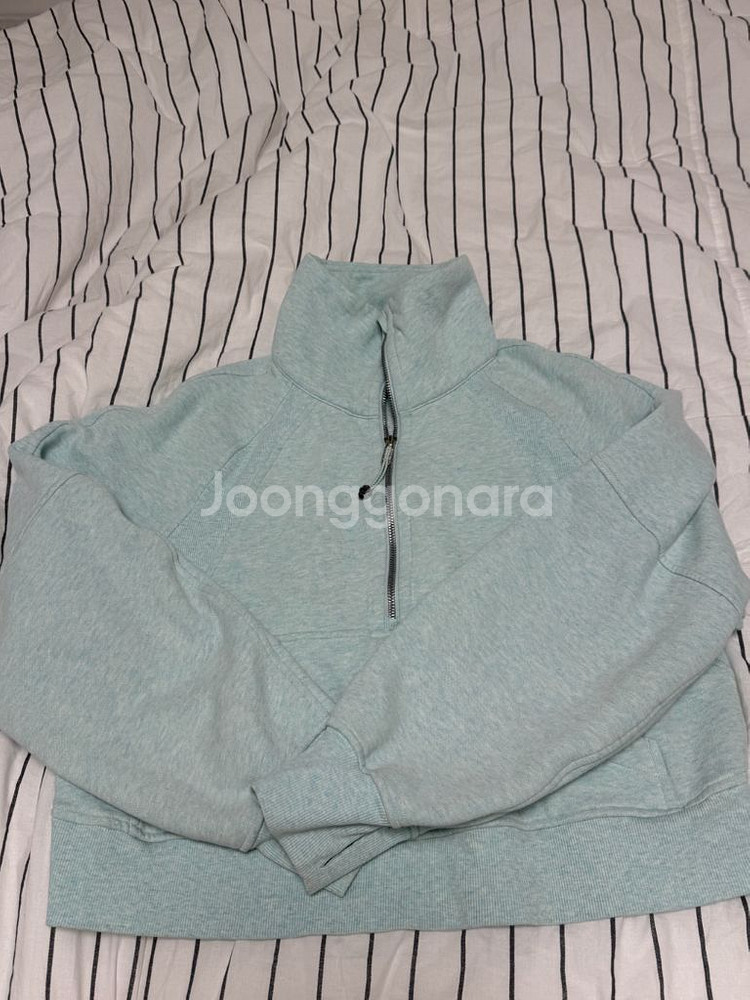 구하기 힘든 민트와 하늘색 사이 컬러에요 :) 3-4번 착용해서 상태는 매우 좋은데 한번 세탁했어요! 택은 한번만 세탁해두 너덜(?) 해지는거 감안해주세요~ 약기모 있어서 넘 따뜻하구 퍼넬넥이라 바람 차단되구 좋아요. 66사이즌데 무난하게 잘 맞아요 사실븐만 연락주세요~!