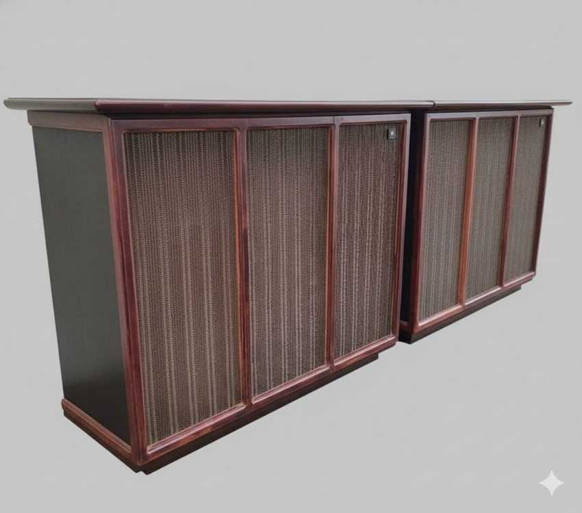 JBL C50 Olympus S8R 스피커 유형: 3-way 플로어 스탠딩 패시브 스피커 시스템입니다. 구성: 075 트위터, 375 미드레인지 드라이버, LE15A 우퍼, PR15 패시브 라디에이터로 구성된 고급 빈티지 모델입니다. 특징: JBL의 상징적인 디자인과 웅장하고 역동적인 사운드로 유명하며, 빈티지 오디오 애호가들에게 인기가 높습니다. 임피던스/감도: 공칭 임피던스는 8옴, 감도는 95dB입니다. 치수: 크기는 약 102 x 67 x 51cm (너비 x 높이 x 깊이)입니다.
