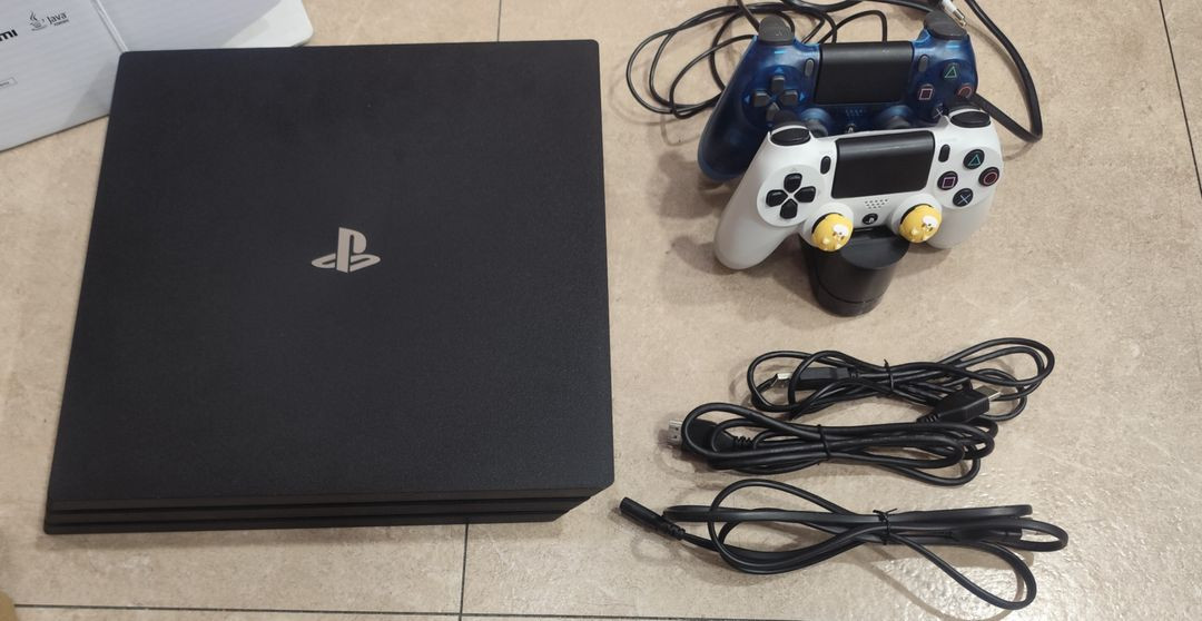 플스4 프로 1TB CUH-7218B 생활기스 정도 있고 깨끗해요. 비흡연 듀얼쇼크 2개 , 쏠림 없어요. 충전 거치대 전원케이블, HDMI 케이블, 컨트롤러 연결 케이블 타이틀 4개 포함입니다. 시스템 버전 13.02 , 최근까지 사용했어요. 초기화 상태입니다.
