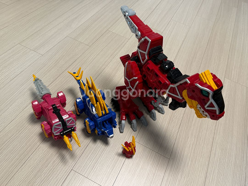 소리나는 오리지널 버전입니다. 상태 양호하고 소리 잘 나와요. 투구, 스테고치 무기, 드릴케라 뿔 있어요. 다이노셀, 티라노 꼬리는 없으니 감안하여 구매해 주세요.