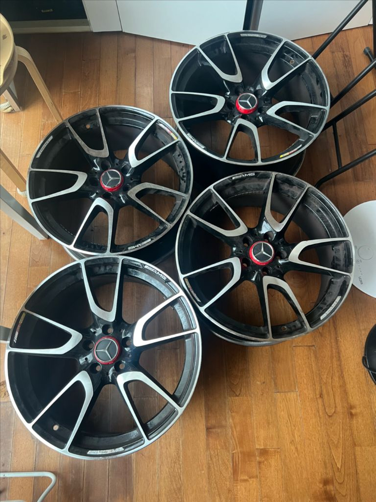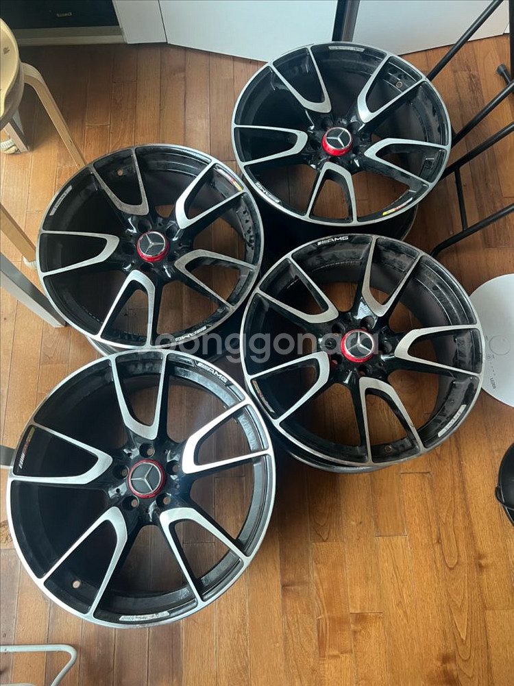 휠 복원한 19인치 amg 휠 네짝입니다 레드휠캡에 AMG 마크 두개 들어가있어요 정말이뻐요 고철값에 팔아요