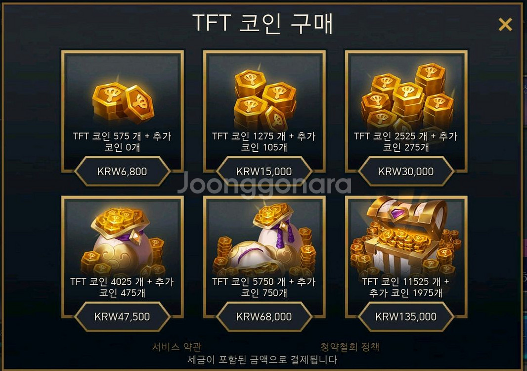 TFT 코인 판매합니다 롤토체스 코인 135000 -> 108000 80프로입니다 !