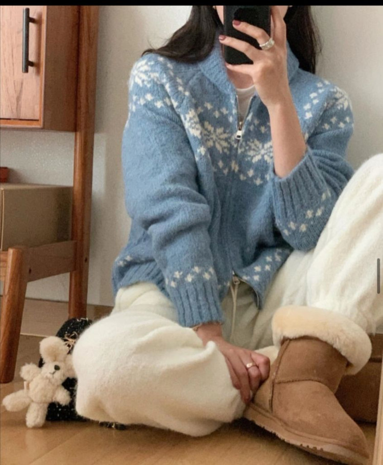 예쁜 블루 컬러의 플로럴 패턴 니트 가디건이에요. 화이트 꽃무늬가 포인트로 들어가 있어서 더욱 로맨틱하고 따뜻해 보여요. 상태 양호하고 겨울철 데일리룩으로 완벽할 것 같아요! 삿포로간다고 샀다가 한번도안입엇어요 삿포로 가실분들 사세요 눈이랑찍으 이쁠거에요