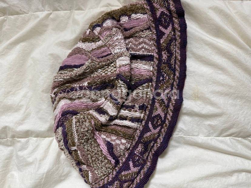 아일랜드 특유의 아름다운 패턴이 들어간 니트 모자예요. 브라운과 퍼플 컬러가 조화롭게 어우러져 있어서 정말 예뻐요. 상태 양호하고 따뜻해서 겨울에 착용하기 좋을 것 같아요! kapital 니트 버킷햇