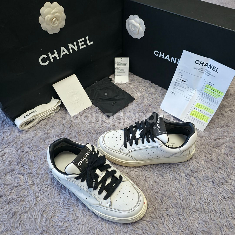 [제품명:샤넬 테니스 백로고 스니커즈] 》제품 설명 가격:700000₩ 상태:A 세탁 앞 부분 뭐 묻은거 때문에 세탁 한번 하시고 착용 추천 드립니다! 상태 매우 좋은 컨디션 유지중인 제품 사이즈:37 부속품:풀구성+인보이스 제품 신품 리테일 가격:4100000₩ 매년 가격 인상중 》제품 등급표 -[개인적 상품 검수후 제공되는 등급표 입니다 각각 개인차가 있을 수 있으니 참고 용도로 확인 해주시면 되겠습니다] N:미시착 새상품 또는 새상품 제품이며 개봉,부속품 일부가 없을 수 있습니다. S:사용횟수 적은 제품으로 이염,하자 일절 존재하지 않는 새상품과 상태대비 비슷하며 중고 제품 중 최상 컨디션 제품 A:제품 사용감은 존재하나 하자,뜯김,찢김 같은 제품 변질은 없는 좋은 컨디션 유지중인 제품 [클리닉 1회 추천 드리는 컨디션 등급] B:중고 제품 느낌 스크래치,미세 이염,잔기스 등 생활감 존재 사용감 존재 C:스크래치,미세 늘어남,변색,미세 이염,사용감 등 확연한 중고 제품 Z:제품 등급 판단X 하자,이염,늘어남,사용감,뜯김,찢김,수선자국 존재 외 전부다 존재하는 제품은 아닐수 있습니다 상세적인 사유는 개인 문의 주시면 감사하겠습니다. -클로젯 상점 모든 제품 가격 제안받고 있습니다 모든 제품 가격 제안 주시면 친절한 답변드리겠습니다- 》연락 수단 본 상점이 연락이 닿지 않을 경우 동일 상점 업무용 휴대폰 -청라명품쇼룸클로젯- -청라1등명품클로젯- 외 같은 상점 다른 대표 -클로젯closet- 글 작성 상점이 연락이 안 닿을 시 위 3개 중 한 상점에 연락 주시면 보다 친절하고 빠른 답변드리겠습니다. "핵심"》클로젯 이용안내 -제품 구매 결제 전 문의를 먼저 주시면 감사하겠습니다-[품절 제품이랑 겹칠 수 있음] -모든 제품 동일 모델이라도 상품의 상태,연식 등 부분은 다른 제품입니다 모든 제품 각각 따로 업로드 진행합니다. -중고 제품 특성상 이미지에 보이지 않는 미세한 얼룩,스크래치,잔기스,사용감이 보일 수 있습니다. -제품 상품화 과정 사진은 풀구성이나 제품은 단품으로 출고 나가는 제품도 많으니 상품 상세 설명한 잘 확인 후 구매 요청 주시면 감사하겠습니다. 》배송 안내 -제주,도서,산간 외 무게가 많이 나오는 제품은 추가 운임 비용이 발생할 수 있습니다. -평일 오후 3시 이전 결제 건은 당일 출고되며 상품 배송은 결제일로부터 평균 1~2일 소요 됩니다[주말,공휴일 제외] -퀵/택시 배송/터미널 수화물/출장 배송 퀵,택시,터미널 전부 개인 지불 출장 비용 거리에 따라 측정 [문의] 》반품 안내 -모든 제품 가품이 아닌 이상 개인 단순 변심,사이즈 미스 등 개인 거래간 환불 사유와 관계가 없는 이유로는 반품 처리는 일절 불가능 합니다. [제품 재매입은 항시 가능 하오니 개인적 따로 연락 주시면 친절한 답변 드리겠습니다] -중고거래 특성상 미세 얼룩[지워지는 이염],실밥 풀어짐,잔기스,미세 사용감 등 하자로 표기하지 않습니다. 》클로젯 Closet 추가 공지 A:상점내 상품은 모두 개인 소유이며 오프라인 매장은 운영하지 않습니다. B:상점 모든 제품 100% 정품만 취급하며 전제품 검수 후 업로드 진행한 제품입니다. 오차로 인한 가품이 배송 진행될 시 빠른 전액 환불 처리를 진행해드리고 있습니다. C:쇼룸 방문 예약제로 가능하며 전제품 피팅 후 구매도 가능합니다. D:상점내 모든 제품은 본인이 직접 촬영후 업로드 진행한 제품 입니다. 》클로젯 매입,위탁 문의 과정 -24시 상관없이 일어나있다면 친절한 상담,개인적 문의 전부 가능합니다. -매입 제품은 택배,퀵,출장 전부 저한테 제품이 도착 후 "검수"진행 후 현금 지급을 진행해 드리고 있습니다. -모조품,도난 제품 전부 제 손에 들어올 시 도난 제품은 경찰서로 본인이 직접 가져다드립니다. 모조품 또 한 폐기 처분을 진행하오니 서로 얼굴 붉힐 일 없게 해주시면 감사하겠습니다.