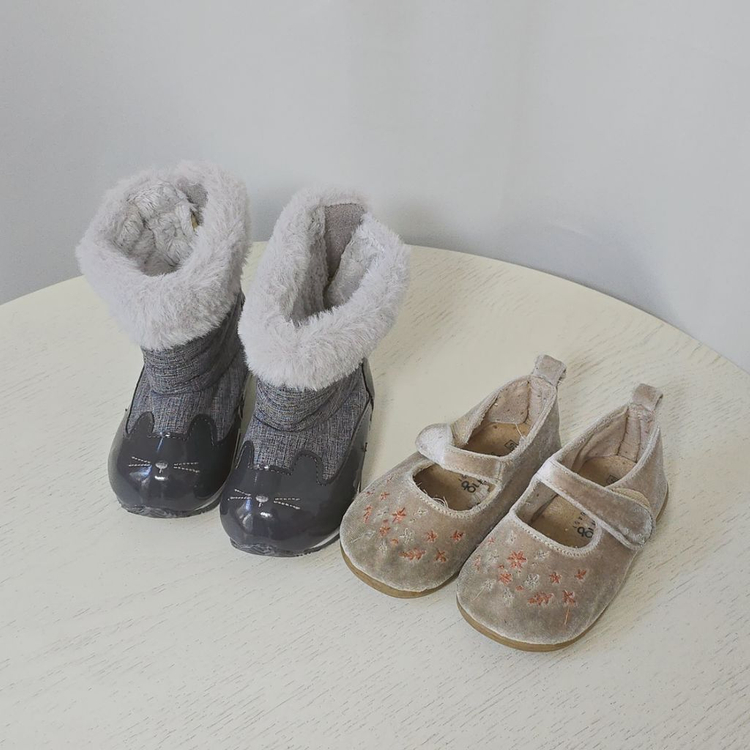 아기 겨울 신발 2종 판매합니다. 부츠는 세탁하다가 옆이 조금 뜯겼는데 신키면 티는 잘 안나서 예민하지 않으신분이면 괜찮을 것 같아요. 파코라반 베이비 130사이즈이구요. 한개는 아가방 125사이즈 신발인데 벨벳 소재여서 겨울에 두꺼운 양말 신키고 신키면 귀엽습니당 둘다 사용감 있는편이고, 세탁은 완료해둔 상태예요. ㅡ 택배비는 별도이고, 지역에따라 2000~4000원 정도 차이가 있을 수 있습니다. 소형 품목에 한해 반값택배 접수도 가능하니 미리 말씀해주세요 GS 반값택배 요금 ~1kg까지 2100원, ~5kg까지 2800원 입니다. (CU 접수불가)