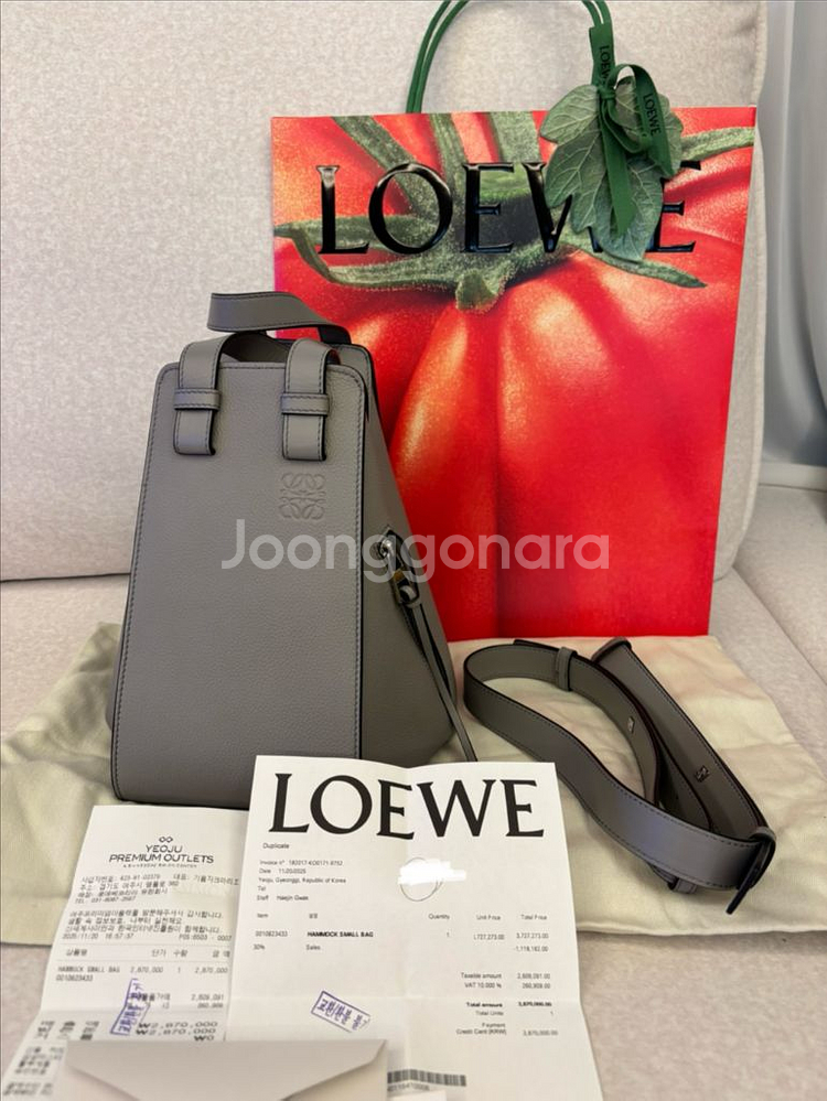 ![[정품] 로에베 해먹백 스몰 그레이 새상품--2](https://img2.joongna.com/media/original/2025/12/13/1765627244558Q34_3ghuw.jpg?impolicy=resize)