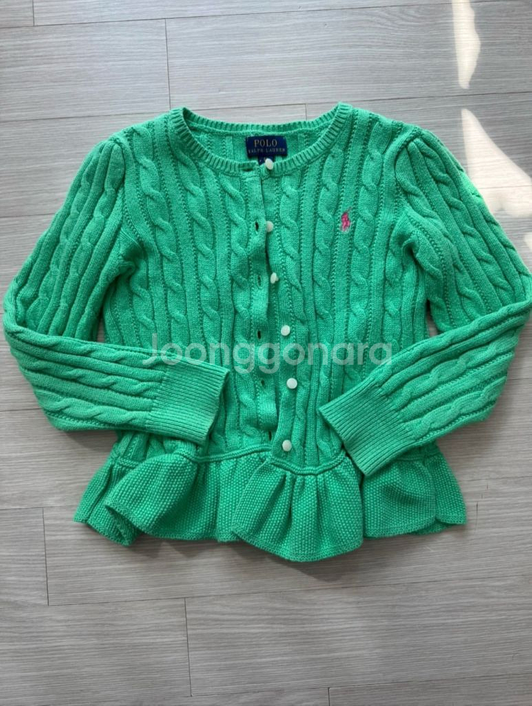 폴로 랄프로렌 여아용 프릴 가디건입니다 초록색 케이블 니트 디자인이 특징이며, 사이즈는 6X입니다 부드러운 촉감으로 아이가 편안하게 입을 수 있습니다. 넘 예쁜 그린색으로 얼마 안입어서 상태 깨끗합니다.^^