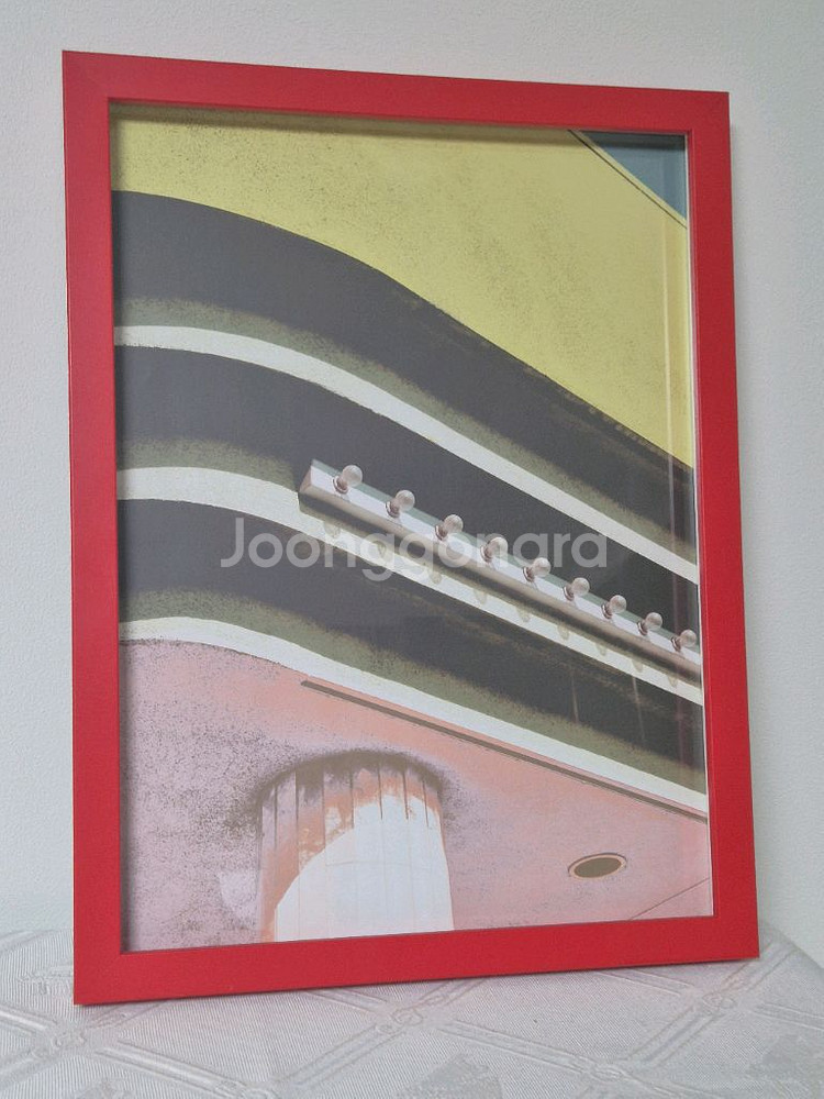 빨간색 프레임의 액자입니다 가로 32cm, 세로 44cm입니다 인테리어 소품으로 활용하기 좋습니다 그림빼고 액자로써도좋습니다 상태좋습니다
