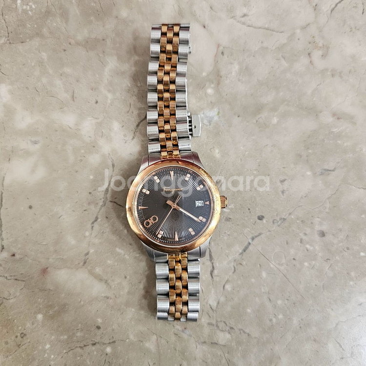 페라가모 정품 m사이즈 금장 시계예요 로즈골드의 예쁜 금장이구 14개의 다이아몬드가 박혀있습니다~ 케이스,여분줄 모두 있습니다 상태 최상입니다 220만원에 구입했던 시계예요