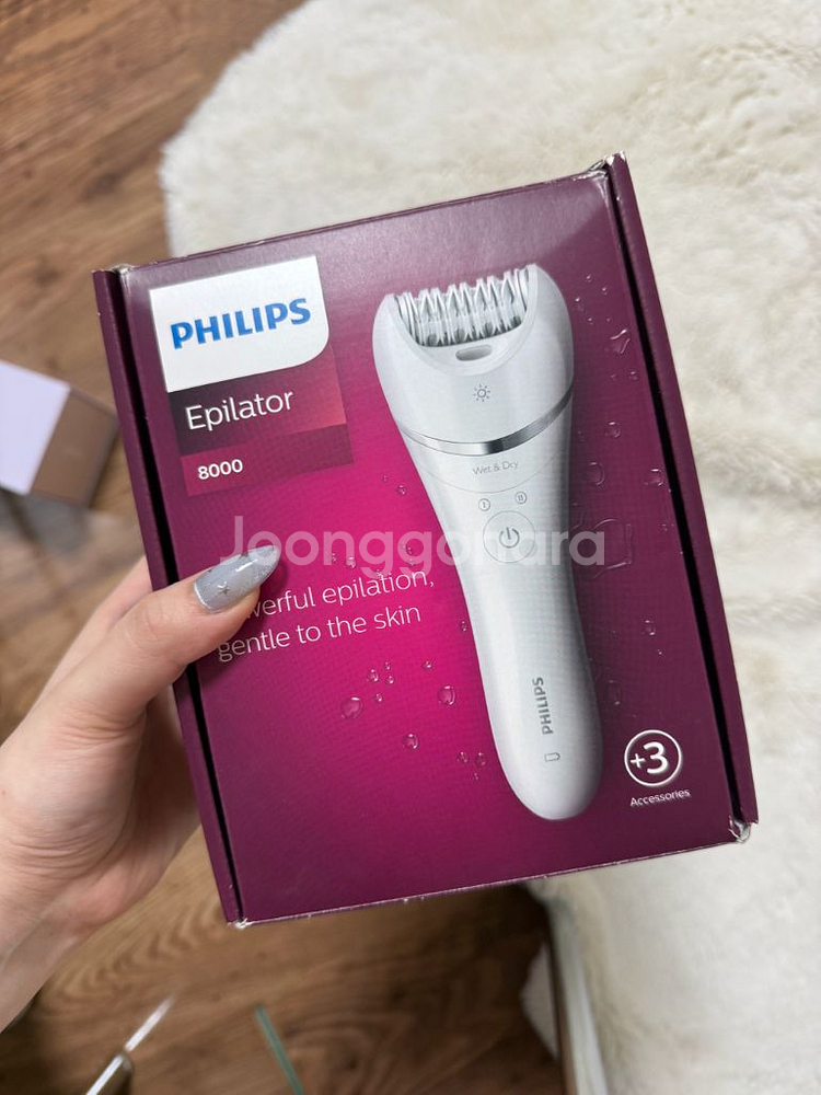 필립스 에필레이터 8000 시리즈입니다 젖은 상태와 마른 상태 모두 사용 가능합니다 피부에 부드러운 제모가 가능합니다