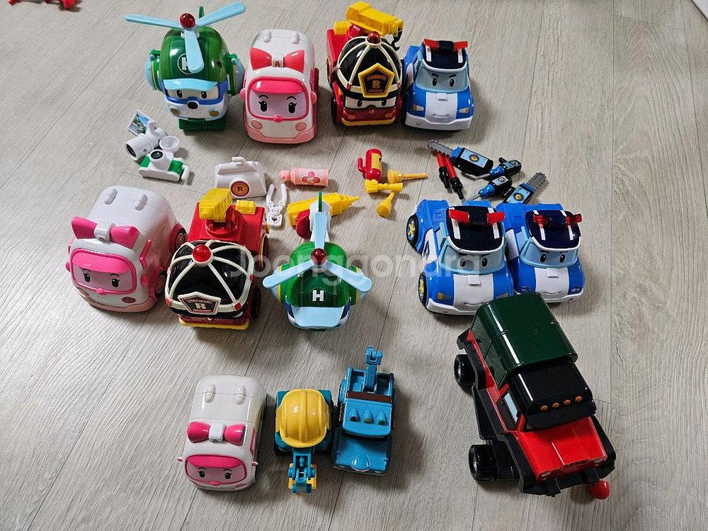 로보카폴리 디럭스 변신로봇 4종이예요 무기 모두 다 있고 폴리는 아이가 너무 좋아해서 헐거워져 하나 더 사서 무기가 2세트 입니다 사진상 맨 뒤에 4개입니다 모두 변신 잘 됩니다! 헬리, 엠버는 불빛이 나요. 로이, 폴리는 배터리가 다 된 건지 불빛이 나지 않습니다 교체해서 확인해보지 않아 잘 모르겠어요~! 4번째 사진 엠버, 로이는 디럭스보다 조금 작지만 풀백기능 있는 장난감이예요 헬리는 꼬리 넣으면 프로펠러 돌아가요 5번째 사진 폴리 2개는 하나는 디럭스, 하나는 일반 사이즈인데 둘 다 변신 되는거예요. 아이가 엄청 좋아해서 헐거워질때까지 갖고놀아 새로 또 사주었어요 이 디럭스는 좀 헐겁습니다~! 작은건 괜찮아요 마지막은 다이캐스팅 포코, 스푸키, 악당 포처입니다~! 악당이 있어야 재미있습니다~! 무기 발사도 잘 됩니다! 모두 일괄가격입니다 ⭐️cu반값+2000, 일반+3500 입니다 구매원하시는 분은 챗 주시거나 바로 안심결제해주세요😊