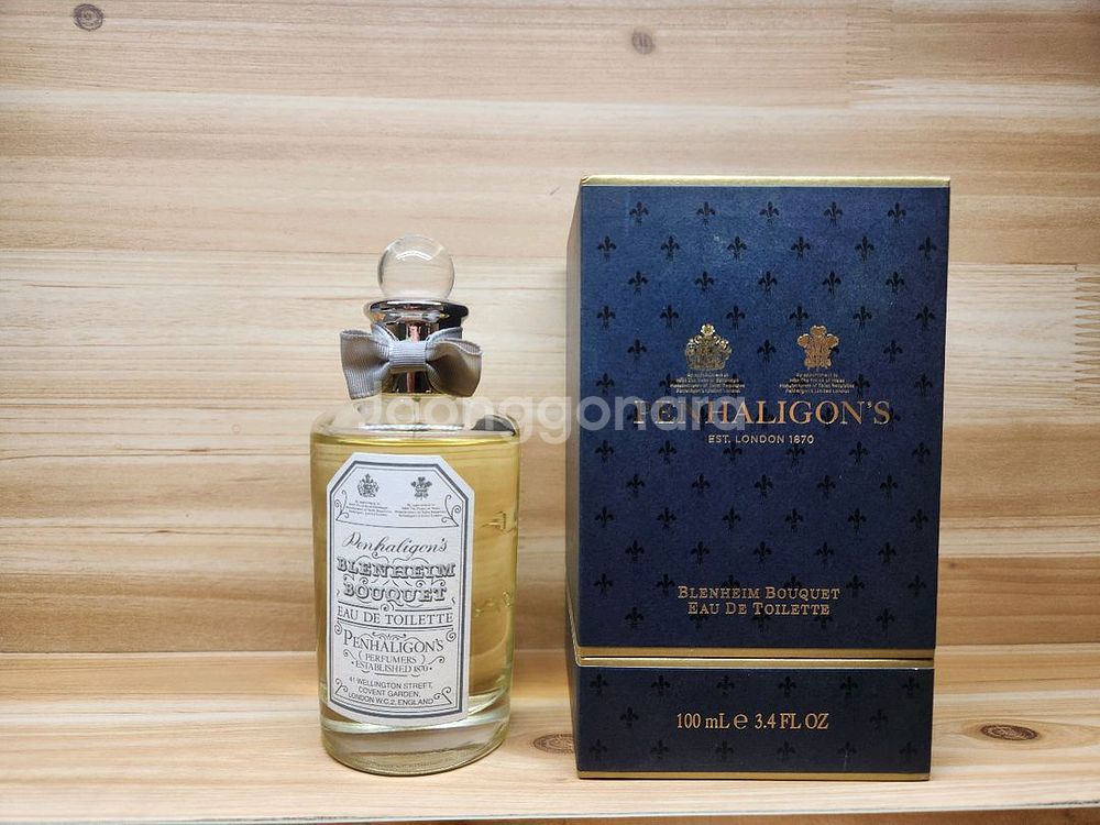펜할리곤스 - 블렌하임 부케 100ml 입니다. 박스와 향수 본품 둘 다 있습니다. 잔량은 사진으로 확인 부탁드립니다. 그리고 바틀에 라벨이 비뚤게 붙여져 있는데 확인부탁드립니다. 가격은 택포 9만원 입니다. 네고, 에눌 문의 받지 않겠습니다. 감사합니다
