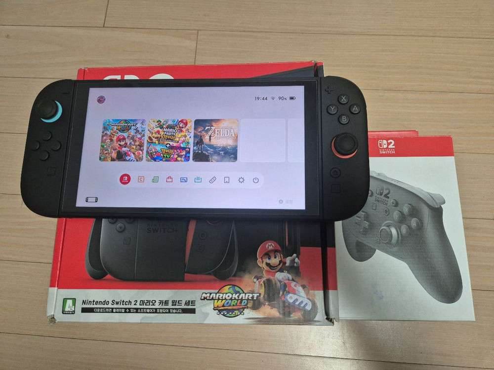 닌텐도 스위치2 마리오카트월드 세트와 주변기기입니다. 추석에 구매해서 독모드로만 하다가 잘 안하게돼서 판매합니다. 필름 붙였으며, 프로콘2(11만원)와 전용 sd카드 expres 256기가(7.2만원) 세트로 판매합니다. 스위치2만 구매시 55만원 sd express 256gb만 따로 구매시 5만원 프로콘2만 따로 구매시 9만원 한번에 구매시 67만원입니다 2개 묶어 사시면 만원 깎아드립니다. 구매하시게 되면 본체 초기화해서 드립니다.