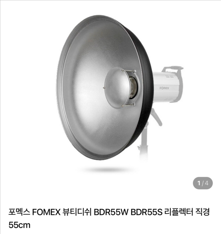 포맥스 뷰티디쉬 55cm 직경 리플렉터입니다. 사진 촬영이나 조명 작업에 유용한 전문 장비입니다 구매 후 거의 사용 안했어요 디퓨저 포함입니다