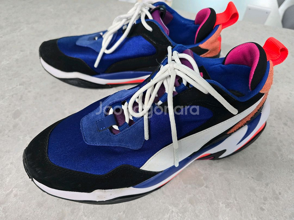 푸마 썬더 4운동화예요! 블루와 블랙 컬러가 조화롭고 화려한 디자인이 정말 멋져요. 상태 양호하고 나이키 박스도 함께 드려요. 오랫동안 보관만했습니다. 상태 매우 좋습니다. 270~275가능합니다. 배송비 포함 판매합니다.