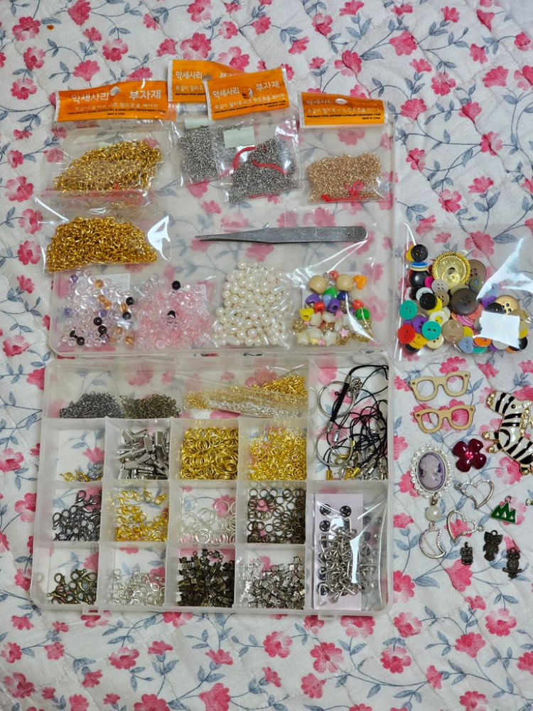 ❤️ 상세 글&사진 확인 후 구매 시 채팅. 네고❌️ 🧡 중고거래 특성상 교환 반품 및 환불 절대안해줌.🙅♀️🙅♂️ ⚠️ 예약/비대면 선입금. 💛 사이즈는 2~3cm 정도 오차 있음. 💚 직거래-오후7시 이후가능(덕계신도방면) 💙 CU택배⭕ 우체국❌(택배비 선불시 몇백원 차액 생길 수 있음) ⚠️깨지는 물건은 직거래(깨져서 가면 구매자 책임. 환불❌️) 💟새상품&중고상품💟 이것저것 취미하려고 모아둔건데.. 너무많아서 처분합니다. 만들수있는것이 많아요~~ 마스크 스트랩, 키링, 비즈키링, 핸드폰고리, 목걸이, 팔찌, 반지 등등 ⚠️케이스 좌측부분 한칸이 깨져있어요. 💫구성💫 케이스(깨진곳있음) / 진주 투명비즈 등 / 미니단추 / 집개 / 핸드폰줄 / 팔찌,목걸이 줄 굵은것 얇은것(새것,쓰던것) / 연장체인(4종류) / 원형마감고리(금,은) / 갈고리(4종류) / 마스크줄 키링 끝에 집개 / 오링 큰것 작은것(금.은.동) / 마스크줄,팔찌같은거맨끝마무리(2종류) / 인형옷 똑딱단추 / 삼각고리(가방끝마무리) / 여러오브젝트 등등 ❌️얼룩말오브제없음
